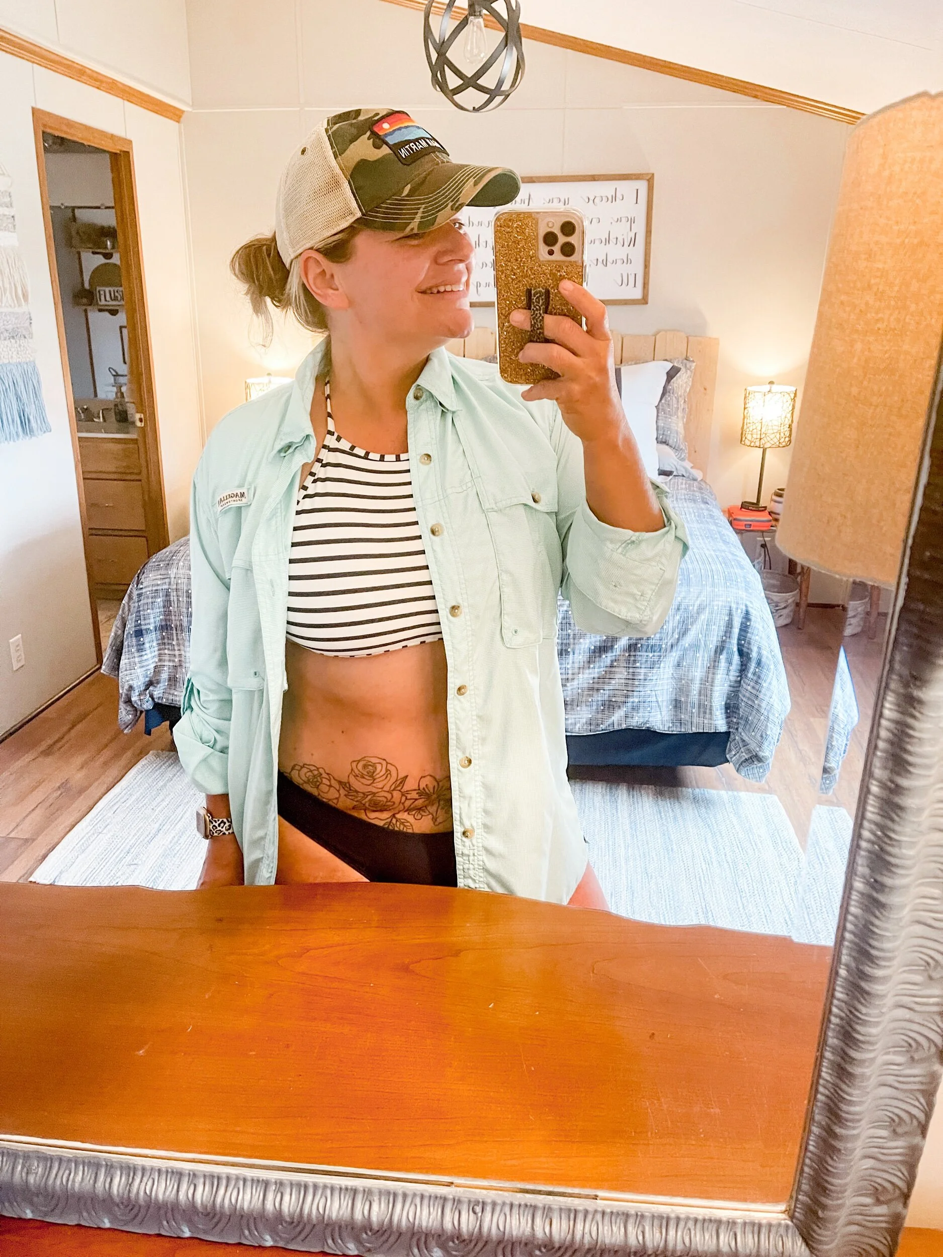 It’s 81° and absolute perfection outside. I wanted to spend the day with my love and soaking up some much needed relaxation and vitamin D. So my first thought was which bathing suit to put on. Then trying them on I realized the 30ish pounds I’ve gained might be a problem. But who cares?? We are made to think we have to be picture perfect to put on a bathing suit. To take a pic. To love ourselves. That’s the mindset I’ve been struggling with my whole life. Being “skinny” to love my skin and find contentment. But I was there 4 years ago. I was what I thought “perfect” should be. And you will never believe it?!? I never found contentment. Why? Because. It’s not about the size, what the box says, or what other people think. It’s about you! Me! Loving who we are right now!! In this moment. So put the dang bathing suit on and LOVE YOU!!!!!